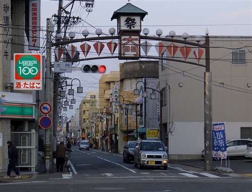 名古屋駅西口を出てビックカメラの先にある信号を渡り、まっすぐ15分ぐらい歩くと大門のアーチがみえてきます。